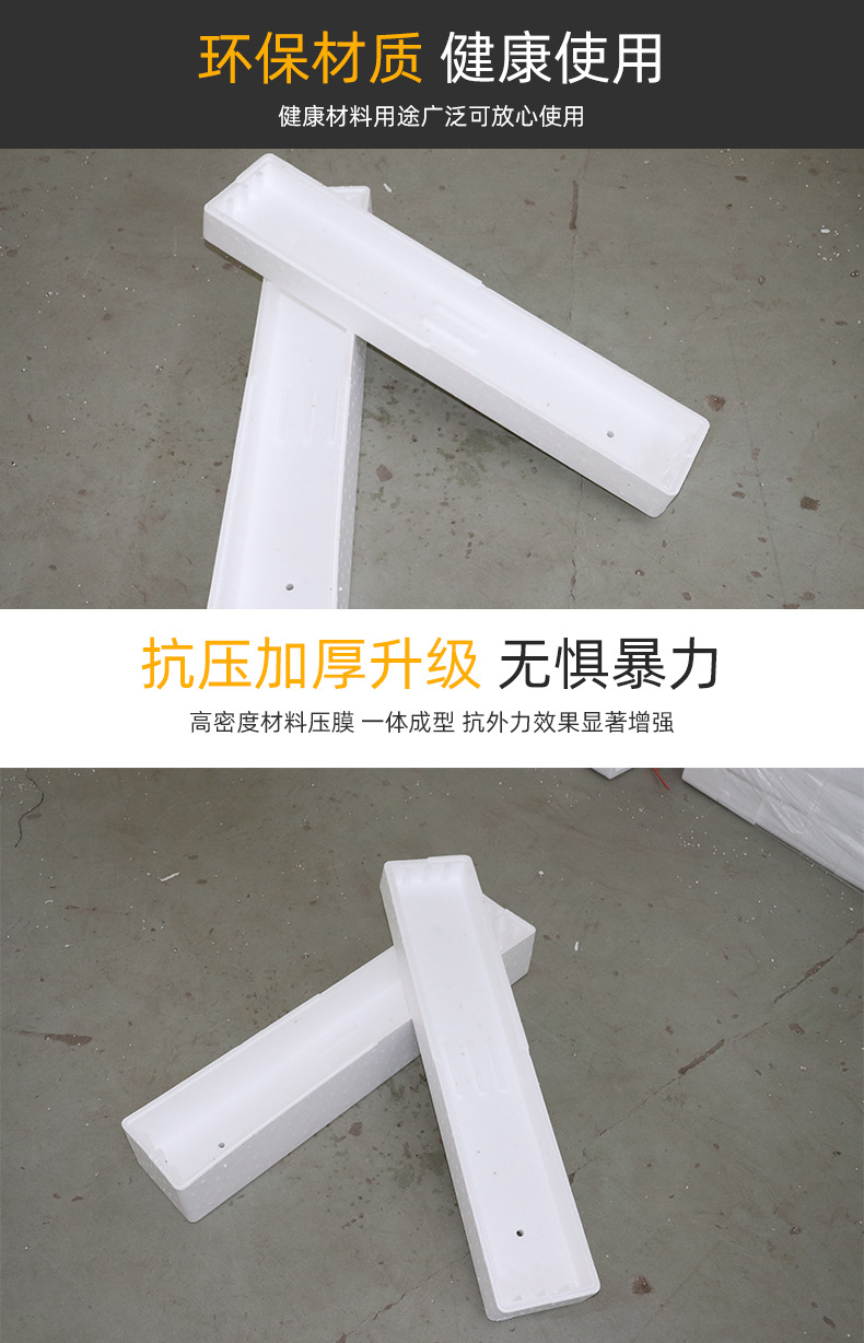 泡沫箱包裝之所以適用于郵遞還體現在包裝靈活上,片狀包裝是比較常見的,能夠針對物品的具體尺寸進行切開,便利包裝,只需填滿塞緊確保物品不被磕碰和不易晃動即可;定位包裝就是依據物品的形狀專門開模定制包裝,能夠把物品結結實實包裝,更好地抗震抗摔,因為開模費用較高,因此這種方法首要用在產量較大,且較寶貴的電器或電子產品包裝中。
