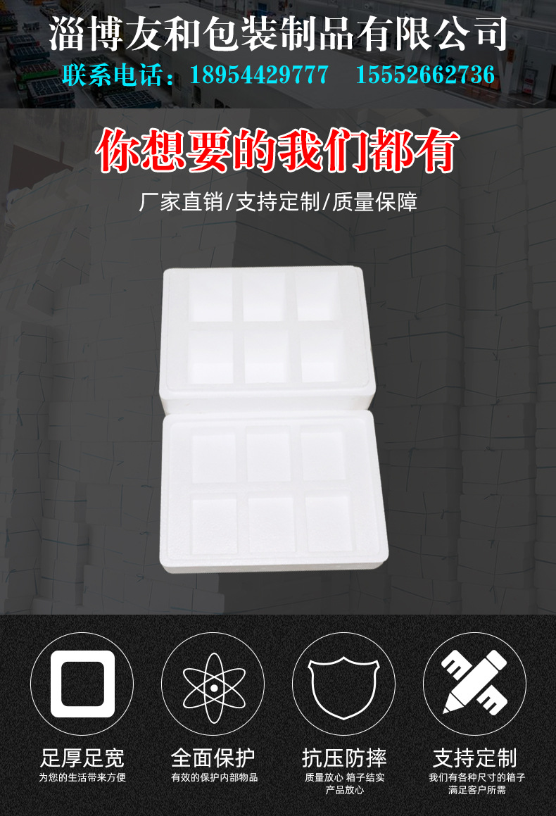 ????淄博友和包裝制品有限公司是專業(yè)的山東泡沫包裝箱加工廠家,本廠主要產(chǎn)品有:泡沫包裝箱,泡沫保鮮箱,水果蔬菜泡沫包裝箱,水果蔬菜泡沫保鮮箱,瓷磚泡沫包裝箱等,產(chǎn)品暢銷全國,深受用戶好評。泡沫包裝定做可以聯(lián)系我們網(wǎng)站 http://m.sdlsst.com/ 上電話,我們會第一時間跟您聯(lián)系。